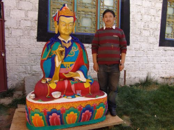 據(jù)普布次仁介紹,這些制作精美的手工藝品都出自邊巴之手,今年43歲的邊巴已經(jīng)有20多年的制作經(jīng)驗,應該可以算是泥塑手工技藝里的佼佼者。當向邊巴說明來意后,這個藏族漢子反而顯得有些靦腆,邊巴說:“我從小就對傳統(tǒng)手工藝很感興趣,家人就專門找了師父讓我去學習,剛開始就學一些彩繪技巧,包括如何上色、構圖等,后來接觸到了泥塑技藝,我就逐漸迷上了它,這一晃20多年過去了。”
