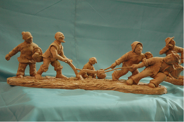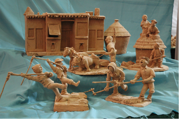 泥塑藝術(shù)是我國一種古老常見的民間藝術(shù)。它以泥土為原料,以手工捏制成形,或素或彩,以人物、動物為主。不同的民間風俗,流傳著很多動人的傳說故事,這些構(gòu)成了泥塑藝術(shù)的精神內(nèi)核。民間泥塑的用途主要有祈子延壽、納福招財、驅(qū)邪避災和裝飾擺設等。泥塑成本低,費工少,是老百姓喜聞樂見的藝術(shù)表現(xiàn)形式,它往往和節(jié)令、禮儀、風俗聯(lián)系在一起,反映的是當?shù)剞r(nóng)村人們?nèi)粘I畹牟煌瑘鼍埃宋镨蜩蛉缟?,場景鮮活生動。