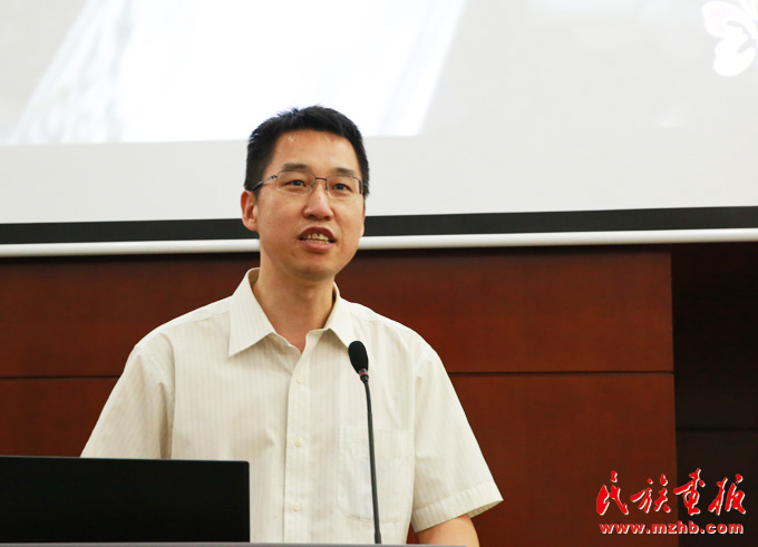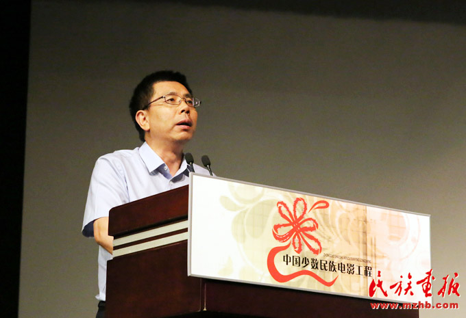 中國(guó)少數(shù)民族電影工程領(lǐng)導(dǎo)小組辦公室副主任、宣傳推廣部主任,中國(guó)民族影視研究中心主任牛頌主持研討會(huì)