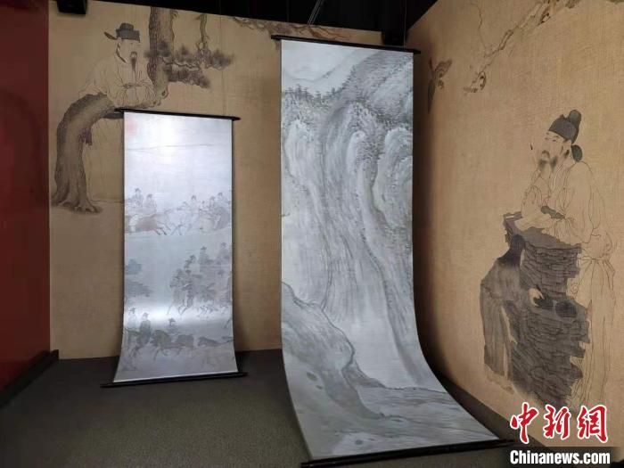 故宮《石渠寶笈》繪畫(huà)數(shù)字科技展的“展卷”區(qū)展出的繪畫(huà)作品,是經(jīng)過(guò)故宮博物院專家、文化藝術(shù)學(xué)者共同研究探討,甄選出《石渠寶笈》中數(shù)十幅最具代表性書(shū)畫(huà)作品,以1:1的比例還原仿制,展示中國(guó)古代書(shū)畫(huà)作品精粹,讓民眾在家門(mén)口即可享受到科技、文化、藝術(shù)相融合的展覽。