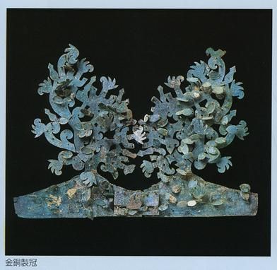 藤之木古墳出土的鎏金冠飾,在我國(guó)遼寧北燕墓地和高句麗墓均有類(lèi)似文物發(fā)現(xiàn),是鮮卑等北方少數(shù)民族貴族流行的冠飾,稱(chēng)為鳥(niǎo)型冠飾。