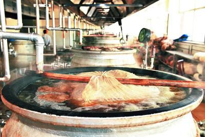 該遺產(chǎn)項目代表性傳承人明珠(左)指導(dǎo)瀧沐覺堪(制藥師)煎熬“五味甘露”。關(guān)確才讓 攝
