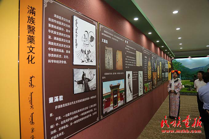 滿族講解員在滿族醫(yī)藥博物館講解滿族醫(yī)藥歷史