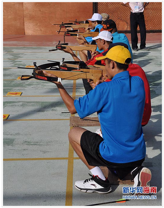 海南省第五屆少數民族傳統(tǒng)體育運動會比賽項目之一——射弩(新華網 圖)