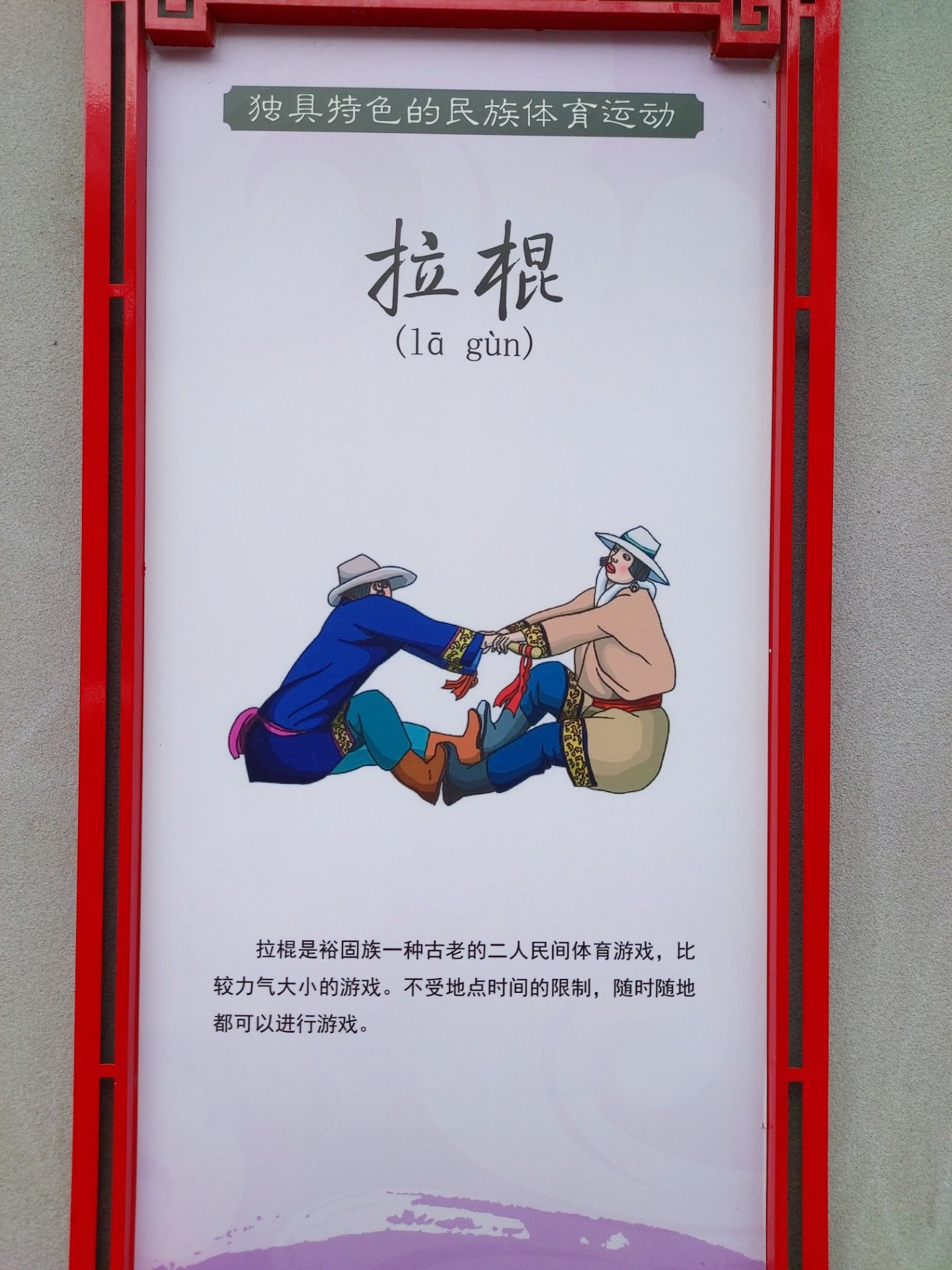 拉棍是裕固族一種古老的二 人民間體育游戲,比較力氣大小的游戲。不受地點時間的限制,隨時隨地都可以進行游戲。