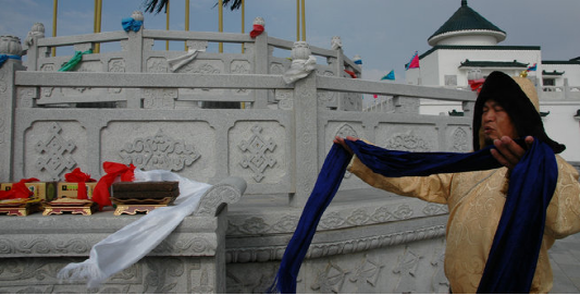 祝詞和贊詞合稱祝贊詞,是蒙古族吟誦式民間口頭文學(xué)體裁之一,是蒙古族特有的文藝形式,最早由薩滿祭詞演變而來。在特定的環(huán)境中,經(jīng)特定的禮俗,由特定的人吟誦。祝詞和贊詞最初產(chǎn)生于勞動,是蒙古族獵戶、牧民集體口頭創(chuàng)作的作品。