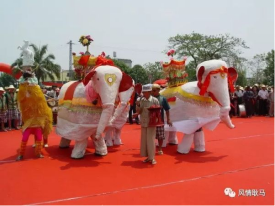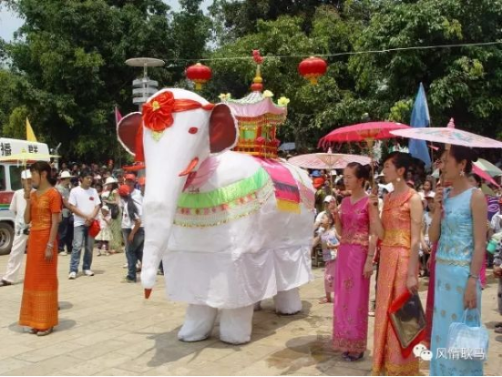 白象舞是云南耿馬縣傣族群眾盛行跳的一種民間舞蹈,也是耿馬特有的舞種,白象舞屬雙人擬獸舞,十分講究舞者之間的默契配合。舞蹈步伐穩(wěn)健、有力。舞蹈基本動作有:“原蹈步”、“前后跳”、“左右跳”、“鼻走”等。經(jīng)過民間藝人長期不斷改進(jìn),而今,耿馬白象舞已經(jīng)形成了一整套基本舞步,表演者借助白象道具模仿大象動作,把笨拙的大象表現(xiàn)得活潑可愛、步伐穩(wěn)健、韻律十足。