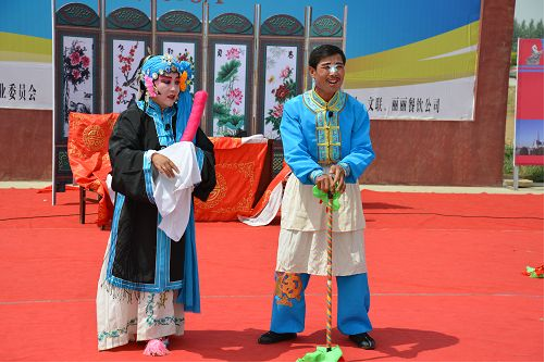 達(dá)拉特道情富有濃郁的地方色彩,生、旦、丑等行當(dāng)齊全,包括“唱、念、做、打”四功,不過由于它演唱內(nèi)容的關(guān)系,以“唱、念、做”三功為主。音樂體制主要為曲牌連綴體,同時(shí)吸收了地方小戲與北路梆子的音樂元素,又兼有地方大戲的部分唱腔曲調(diào),演唱方式以坐唱為主,樂器伴奏分為文場(chǎng)和武場(chǎng),音樂婉轉(zhuǎn)纏綿、節(jié)奏明快,曲調(diào)開朗而流暢,唱白多運(yùn)用地方方言,藝術(shù)風(fēng)格柔美而抒情,充盈了濃郁的鄉(xiāng)土生活氣息。