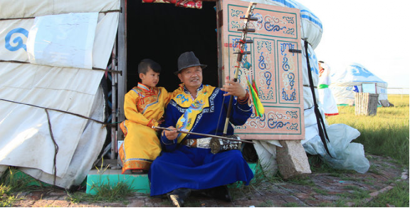 烏力格爾的表演形式是一人一琴,坐著說唱,沒有舞動(dòng)表演。