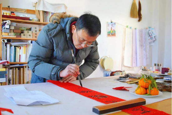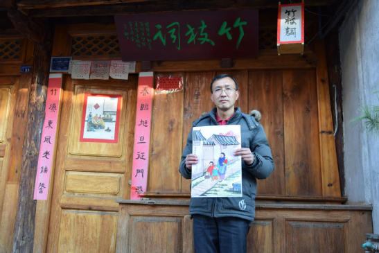 張旭東的童年,是在祖父母的耳提面命中度過的,他跟隨老人習(xí)書繪畫,學(xué)禮明俗。到了弱冠之年,他逐一拜訪古鎮(zhèn)中尚在的民國(guó)時(shí)期出生的老輩文人,向他們請(qǐng)教劍川白族傳統(tǒng)民俗,并做了系統(tǒng)梳理,這也為他后來繪制年畫、撰寫春聯(lián)打下扎實(shí)的理論基礎(chǔ)。