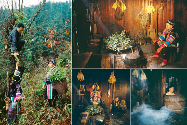 各地藥浴習(xí)俗不同,或每日洗浴,或擇吉日洗浴。由每戶最年長的男性上山采來追風(fēng)藤、半邊楓、九龍盤、血藤等中草藥,洗凈,捆成把或切碎放入大鐵鍋中用水煮沸,待煮出藥汁后,撈去藥渣,把煮好的藥水放入專門藥浴的大桶——“龐桶”中。浴者赤身入桶,在保持適宜溫度(一般為38度左右)的藥液中浸泡20-30分鐘。鍋中有煮好的備用藥水,可保證每位藥浴者浴時的溫度相同。在藥浴中,通過浸泡,讓藥汁慢慢地滲入人體的毛細血管、遍及全身,達到以浴治病的目的?,幾逵盟幩瓷恚环帜信嫌?,全家皆洗,一家人輪流洗,水臟了就換,冷了再加熱?,幾鍖鹘y(tǒng)禮儀規(guī)范滲透到藥浴治療當(dāng)中,規(guī)矩是:先客后主,先小后大,先老后少,先男后女。