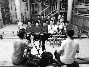 對(duì)維吾爾木卡姆藝術(shù)的拍攝從田野調(diào)查開始,承擔(dān)項(xiàng)目申報(bào)任務(wù)的團(tuán)體成員不僅有政府工作人員、新疆電視臺(tái)的導(dǎo)演,還有長(zhǎng)期進(jìn)行維吾爾木卡姆藝術(shù)研究的專業(yè)學(xué)者以及民族學(xué)、藝術(shù)學(xué)相關(guān)學(xué)科專家。申遺專題片與影視專題片的不同之處不僅在于學(xué)術(shù)力量的加入,更在于相關(guān)訪問調(diào)查的深入性和拍攝工作的長(zhǎng)期性。可以說,這些申遺專題片和資料片是非遺與影像的一次相遇。