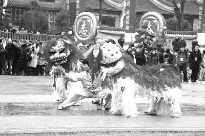 在湖南衡陽舉辦的南岳龍獅爭(zhēng)霸賽現(xiàn)場(chǎng)的舞獅表演。賈 艷 攝