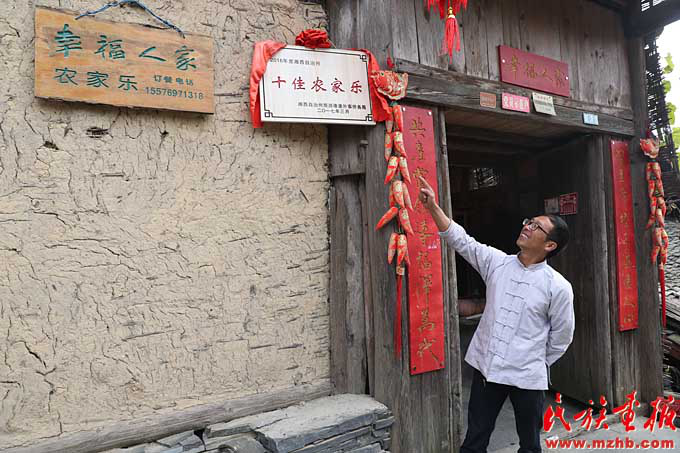 “這名起得好,比我原來想的都好!”43歲的楊超文,在全國各地打過工,還養(yǎng)過雞,賣過菜,開過車,趕過轉(zhuǎn)轉(zhuǎn)場,嘗試過各種創(chuàng)業(yè)。在縣扶貧工作隊(duì)幫助下,楊超文回到家鄉(xiāng)十八洞村并爭取到5萬元貼息扶貧貸款,添置了消毒柜、冰箱、冰柜和一輛三輪摩托車。2016年春天,楊超文的“幸福人家”農(nóng)家樂開起來了。第一天接待了40多位客人,此后隨著游客增多,生意越來越好。