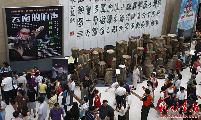 在《云南的響聲》巡演過(guò)程中,楊麗萍把她多年來(lái)在民族地區(qū)收集到的各種樂(lè)器也帶著做展覽,讓更多的人了解少數(shù)民族的文化(楊博 攝影)