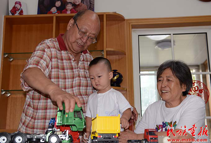 畢大寧與老伴陪小孫子玩車(chē)模,這是他們最開(kāi)心的事(陳濤 攝影)