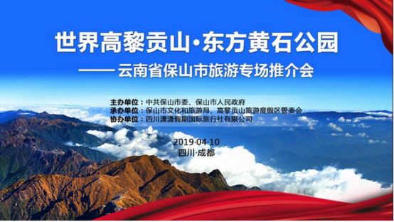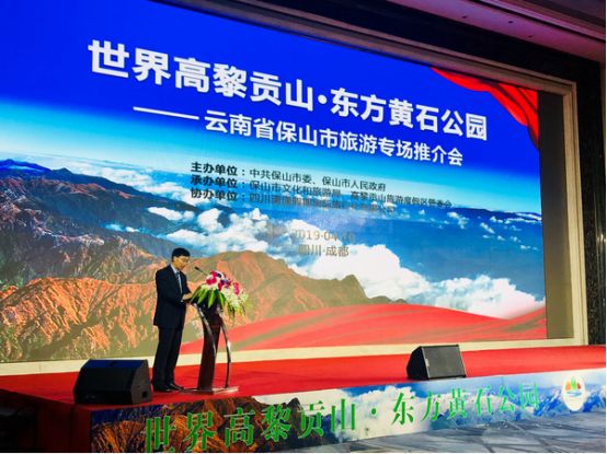 2019年4月10日,“世界高黎貢山·東方黃石公園”保山旅游專場推介會在成都市召開。成都和保山兩地旅游界、航空界、新聞界的嘉賓300多人出席推介會。保山市人民政府副市長宋光興、成都市人民政府副秘書長唐章昭出席推介會并致辭。宋光興副市長指出,成都素有“天府之國”的美譽(yù),自然風(fēng)光雄奇險(xiǎn)秀,民族風(fēng)情多姿多彩,巴蜀文化積淀深厚,革命歷史可歌可泣,川菜享譽(yù)四方,川劇獨(dú)具魅力,旅游資源得天獨(dú)厚,是一座傳統(tǒng)與現(xiàn)代結(jié)合得最好的城市,是“一座來了就不想離開的城市”。高黎貢山作為全球生物多樣性最富集的地區(qū),有高等植物4897種,動(dòng)物2389種,垂直高差達(dá)4000多米,幾乎分布有中國除沙漠之外的所有陸地氣候類型,是國家級自然保護(hù)區(qū),是世界公認(rèn)的地球上最重要的“物種基因庫”、是具有國際重要意義的“世界生物圈保護(hù)區(qū)”,是“三江并流”世界自然遺產(chǎn)的重要組成部分。高黎貢山獨(dú)特的地質(zhì)地貌孕育了保山宜人的氣候、優(yōu)良的生態(tài)、富集的溫泉、秀美的風(fēng)光、多彩的文化和富饒的物產(chǎn),使保山成為云南新興的旅游熱點(diǎn)和宜居城市。希望通過這次旅游推介會,能夠在成都、保山兩地之間架起一座便捷的橋梁,進(jìn)一步深化兩地文化旅游交流合作,共推旅游線路,共拓旅游市場,實(shí)現(xiàn)互惠共贏。