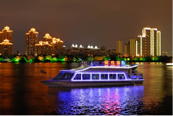 閩江夜游路線:臺(tái)江旅游碼頭→金外灘→閩江大橋→中洲島→南北閩江公園→洪山橋→臺(tái)江旅游碼頭。