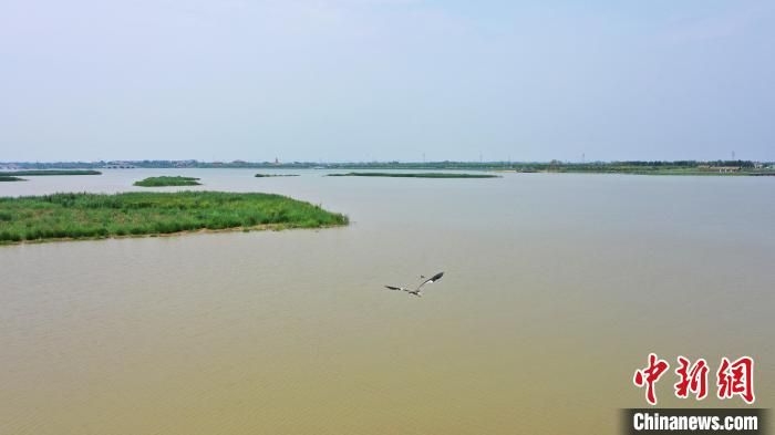 鳥兒在南宮湖濕地公園飛翔?!√锿z