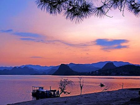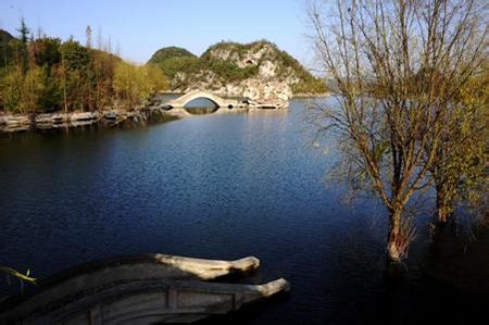 百花湖在朱昌鎮(zhèn)旁,湖中有100多個小島,以湖汊多、島嶼多見勝,遠(yuǎn)眺之下,很有幾分江南水鄉(xiāng)的韻味。游覽百花湖的最佳時間是春天,那時百花湖上就會百花盛開,姹紫嫣紅,百花湖也是因此而得名的。景區(qū)以湖光山色和巖溶地貌的自然景觀為主體,兼具秀、幽、奇、巧的特色。