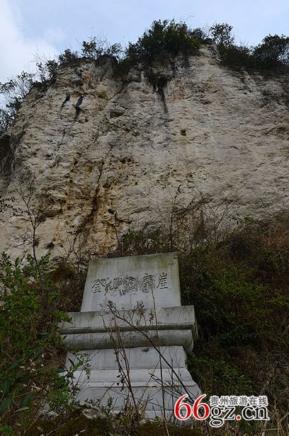 金山洞摩崖是貴陽市花溪區(qū)最早的摩崖石刻,也是貴州最早的摩崖石刻之一。該摩崖石刻位于燕樓鄉(xiāng)東北三里的金山洞巖壁上。其山上豐下儉,古人利用自然山形,在可避風(fēng)雨的洞壁上摩巖、題刻賦詩作畫。整個摩崖面積通高140厘米,寬74厘米;自右至左豎行排列,共6行82字。據(jù)系楷書陰刻,書法古樸流暢,具有較高的歷史價值。