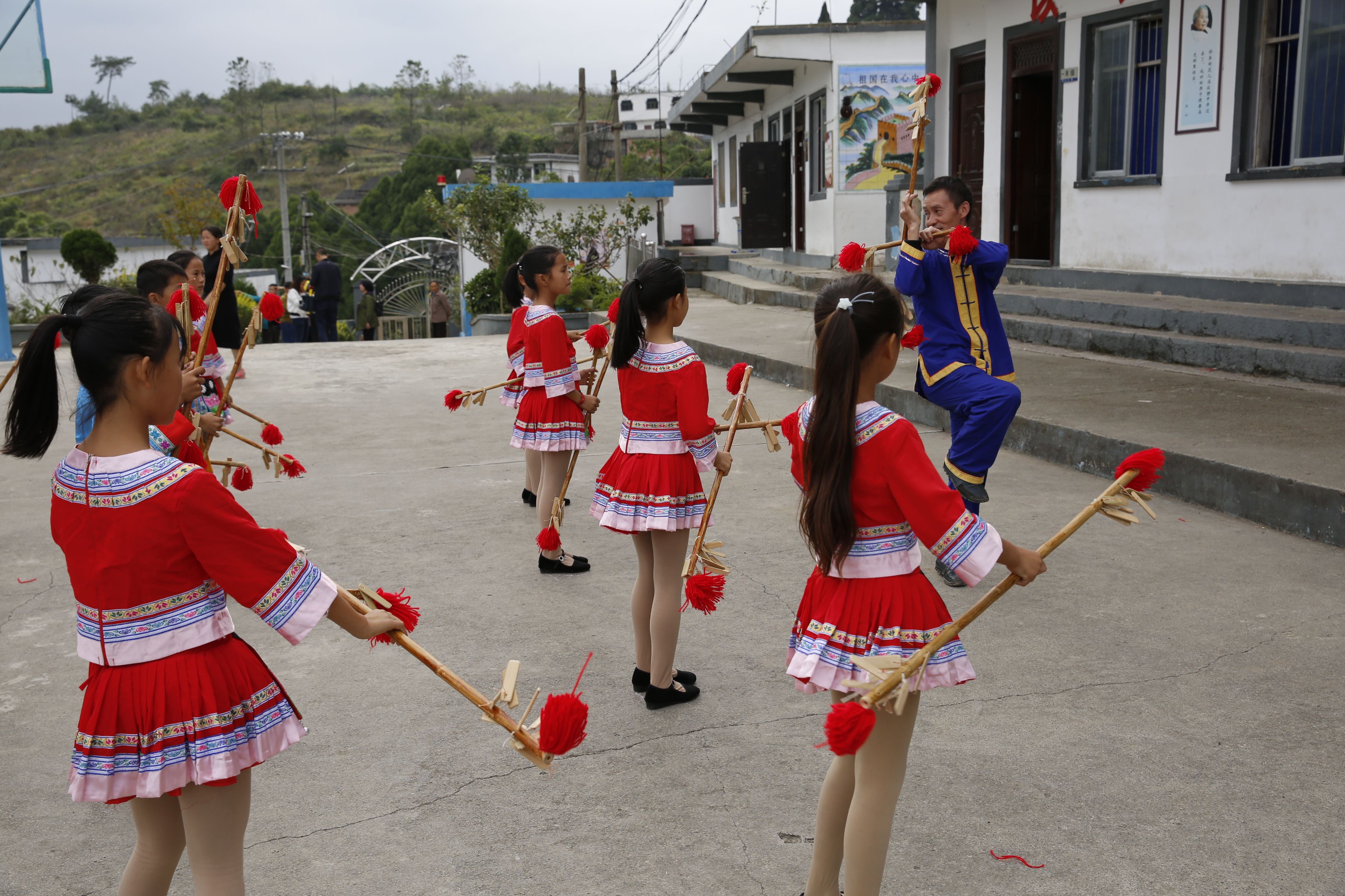 長(zhǎng)竹舞傳承人教孩子們跳長(zhǎng)竹舞2